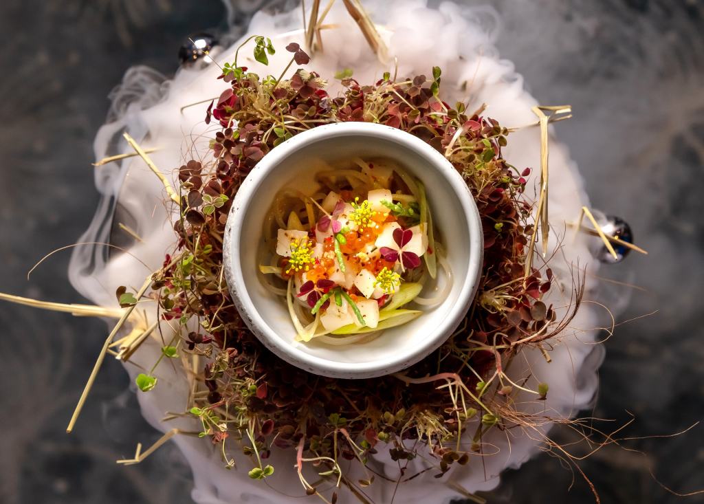 To satiate all senses, diners will be served modern Asian cuisine prepared with sustainably sourced seafood and local produce. Created by chef de cuisine Marvas Huang of Ocean Restaurant and chef de cuisine Tony Choo of Forest森, the four-course dinner—priced from $118.00 for RWS Members and $98.00 for non-members features poetically-named dishes including Misty Morning Sea (pictured below), Ocean’s Reflections, Shining Seas and Treasures of the Ocean. The ingredients are also sourced from local fisheries Barramundi Asia and Ah Hua Kelong, which farm quality seabass and shellfish, respectively.