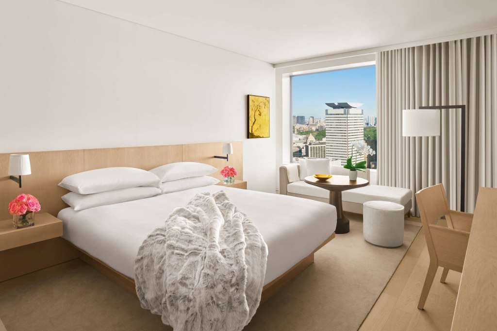 Take a close look at the property and you’ll find reverence to the local culture in beautifully subtle ways, from the use of natural materials like walnut, oak, and silk to yamato-bari, a traditional Japanese wood cladding. Located within mixed-use skyscraper Tokyo World Gate, the property offers some of the most stunning views of the landmark Tokyo Tower.