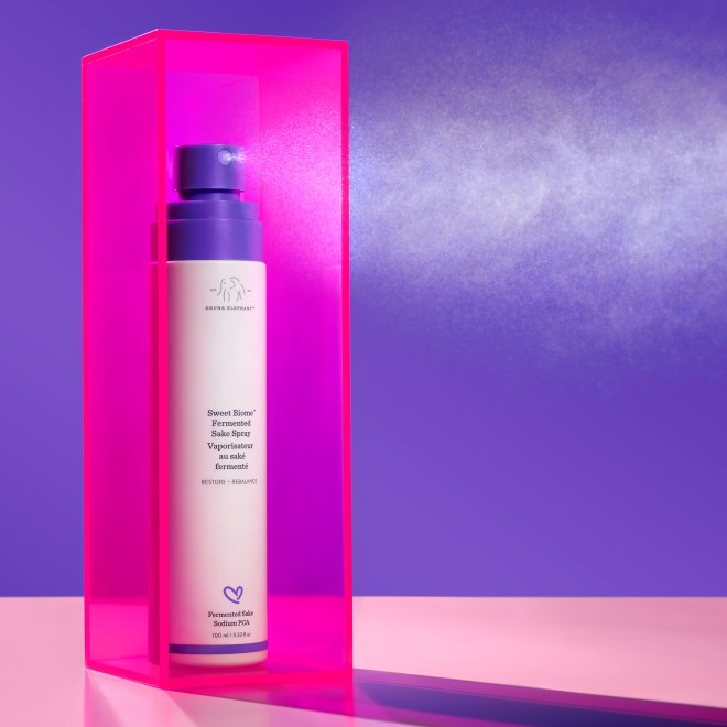 Enter Drunk Elephant’s Sweet Biome Fermented Sake Spray, the latest product in the cult beauty brand’s arsenal of skincare powerhouses. Its purple-accented white vessel fits right into the brand’s minimalist aesthetic, while its ingredients include superfoods like fermented sake extract, kombucha, and coconut water. Like all of the Drunk Elephant’s products, the Sake Spray is dermatologist-approved and naturally-formulated—which means no fragrances, essential oils, and silicones.