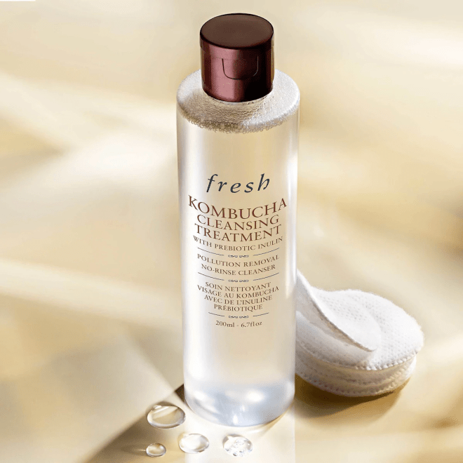 Offering double the skincare goodness, the Kombucha Cleansing Treatment (main image) from Fresh removes makeup, including mascara and sunscreen, as well as pampers skin with prebiotic inulin for clarity. Its no-rinse formula also sweeps away pollutants and impurities while refining the look of pores and smoothing out skin texture.
