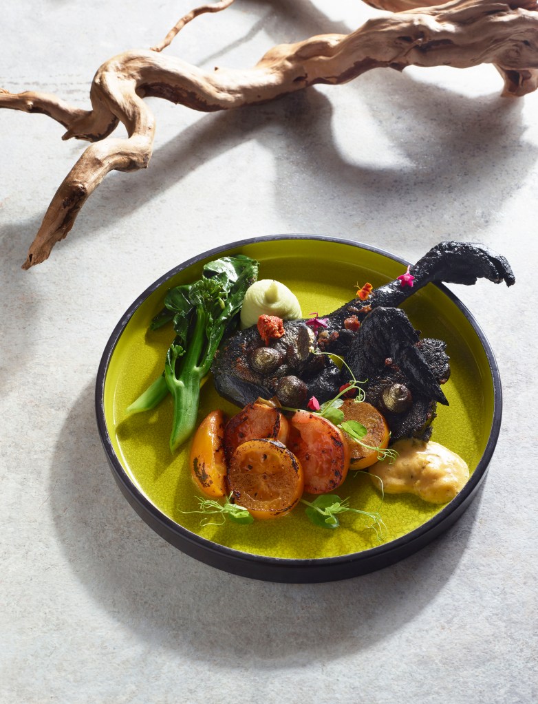After which, we were served the cauliflower bloom, which has the vegetable done in four ways: floret, dehydrated, cous cous, and pureed. While the contrast in textures worked, the flavours were bland despite the addition of garlic crumbs and mixed nuts. Thankfully, the mains stole the show. The black silkie poulet put a Western spin on the black silkie chicken, a common ingredient in Chinese herbal soups, by chargrilling it and pairing with garlicky crumb, béarnaise sauce, black garlic puree, wollfberry mash, and ugly heirloom tomatoes. The verdict? The dish was juicy and flavourful to the last bite.