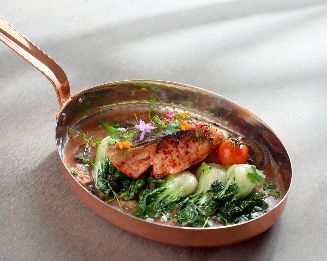 Equally enticing is the black berry four-grain healthy rice with roasted pork jowl “ton toro“, which the chef first created for his diabetic mother. Seared for a pleasant charred fragrance, the dish featuring black berry rice, red rice, barley, pearl Rrice, and lap cheong (Chinese sausage) was moreish and delicious, so much so that the accompanying slices of pork jowl paled in comparison. Another family dish close to chef Heman’s heart is the filet de barramundi cooked in fermented red yeast wine—simple fare that scores for its healthy and hearty flavours.